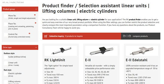 In order to give customers and interested parties a better understanding of the wide RK product range and make selections easier for them, the existing selection assistants have been reworked to include various optimisations and new product finders have been introduced.