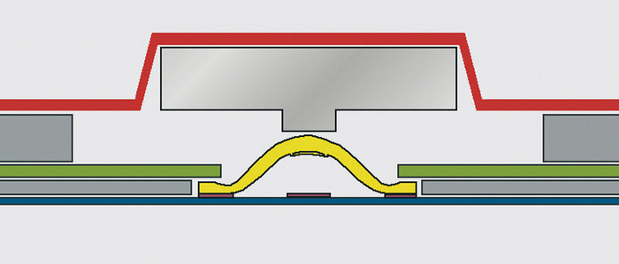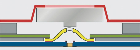 The main feature of this technology is the improved haptic feedback and operability! The so-called “short-stroke” feeling considerably improves the input interface, including for keys with extremely small or extremely large surfaces. This is guaranteed by the highly-tactile, robust key element which is fitted between the snap dome and front membrane. In addition to providing better feedback, the Profiline key areas are also extremely robust. The integrated acrylic inlay gives protection against dust and moisture and also protects the snap dome against possible deformation. Not even heavy point-specific pressure can damage the key areas.