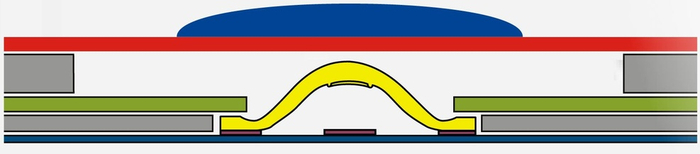 In addition to keypads based on conductive silver, we also manufacture high-quality keypads with copper-laminated base membranes, galvanically silver-plated, and gold-plated on request. As the copper-laminated material is highly flexible, it is almost impossible for breaks to occur in the membrane cable – problems such as silver migration are practically impossible.